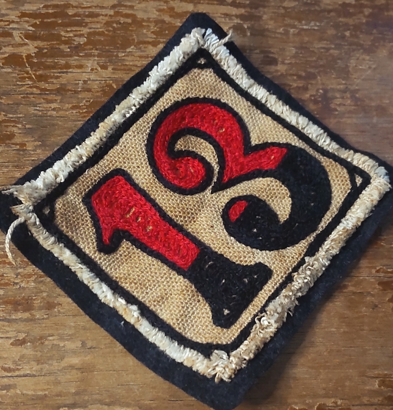ハンドルミシンを使用した、チェーンステッチのワッペンです。